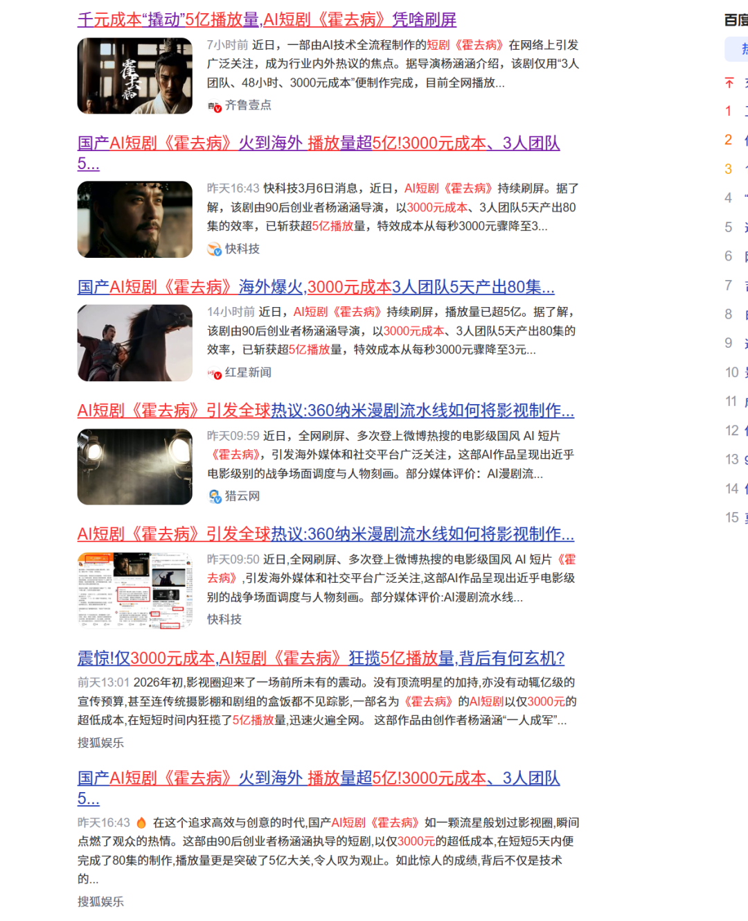 从业者集体辟谣:AI短剧《霍去病》根本搜不到,不存在3000块钱80集