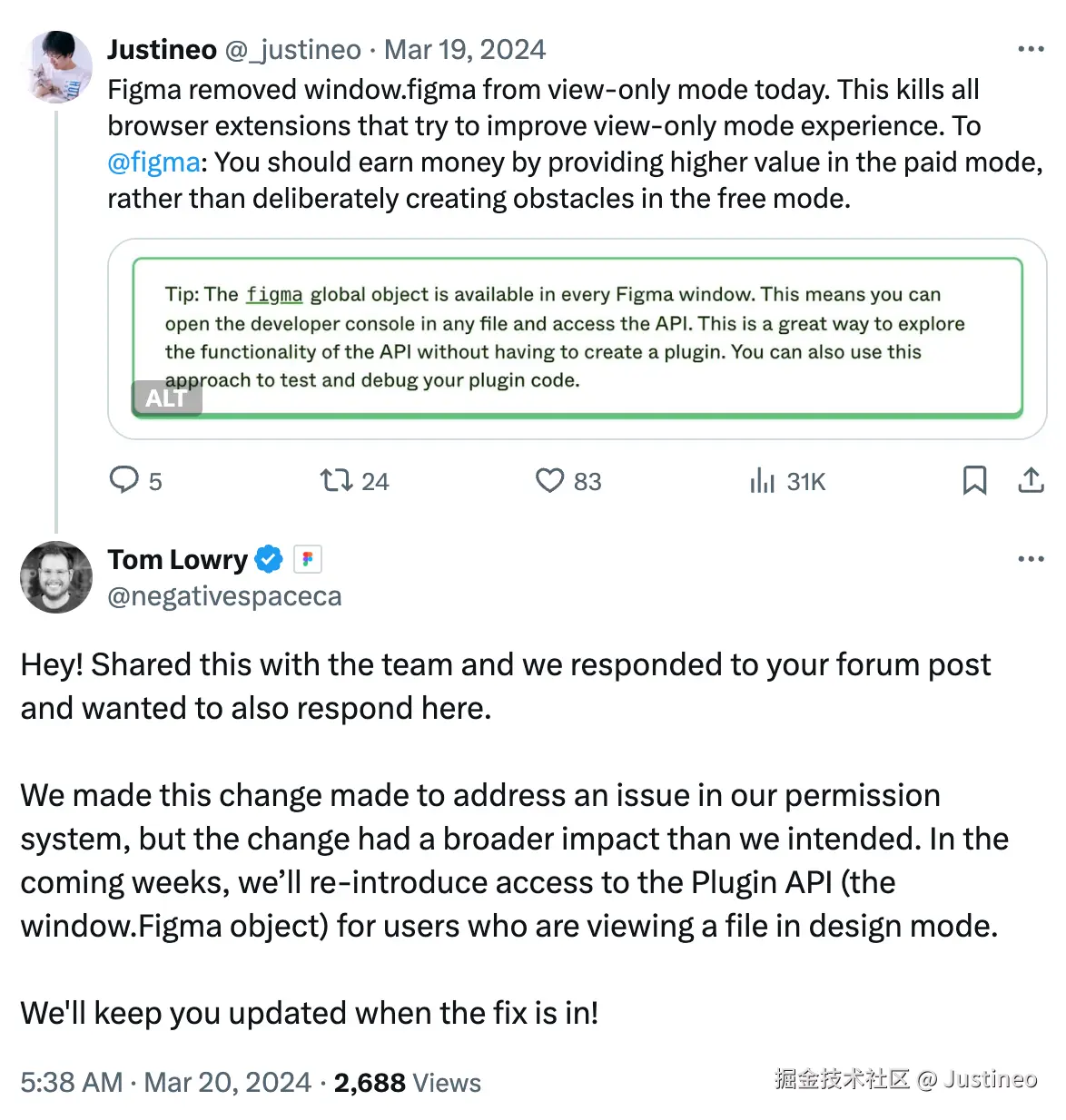↑ Figma 说好的恢复 window.figma 访问变成了进一步限制