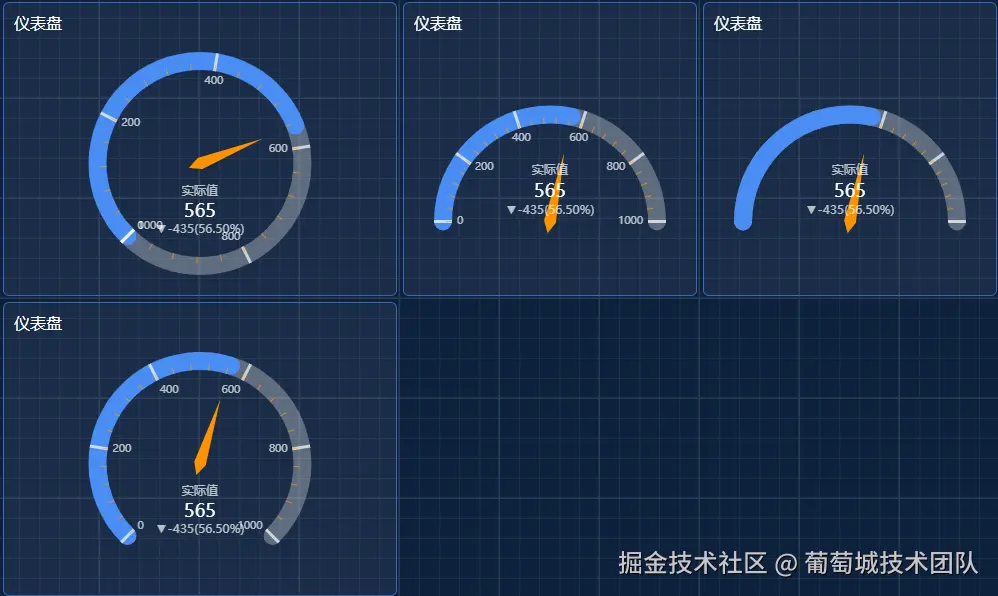 **(2)适用场景:**目前很多的管理报表或报告上都是用这种图表,以直观的表现出某个指标的进度或实际情况。