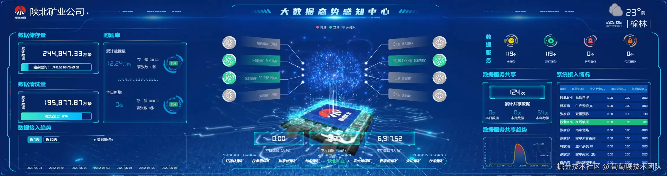 例如:京东 618 数据大屏实况直播,可视化大屏展示大数据平台的资源利用、任务成功率、实时数据量等。企业领导人可以更容易发现各种大数据集的市场变化和趋势。