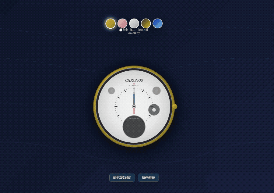他还用这个编号为 riftrunner 的模型,生成了一个能同步真实时间,切换表盘颜色的手表动画 SVG。