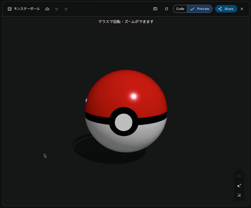 以及拿手机应用中的 Canvas 和 Claude 4.5 Sonnet 来对比,输入的提示词都是,一个 3D 宝可梦精灵球。