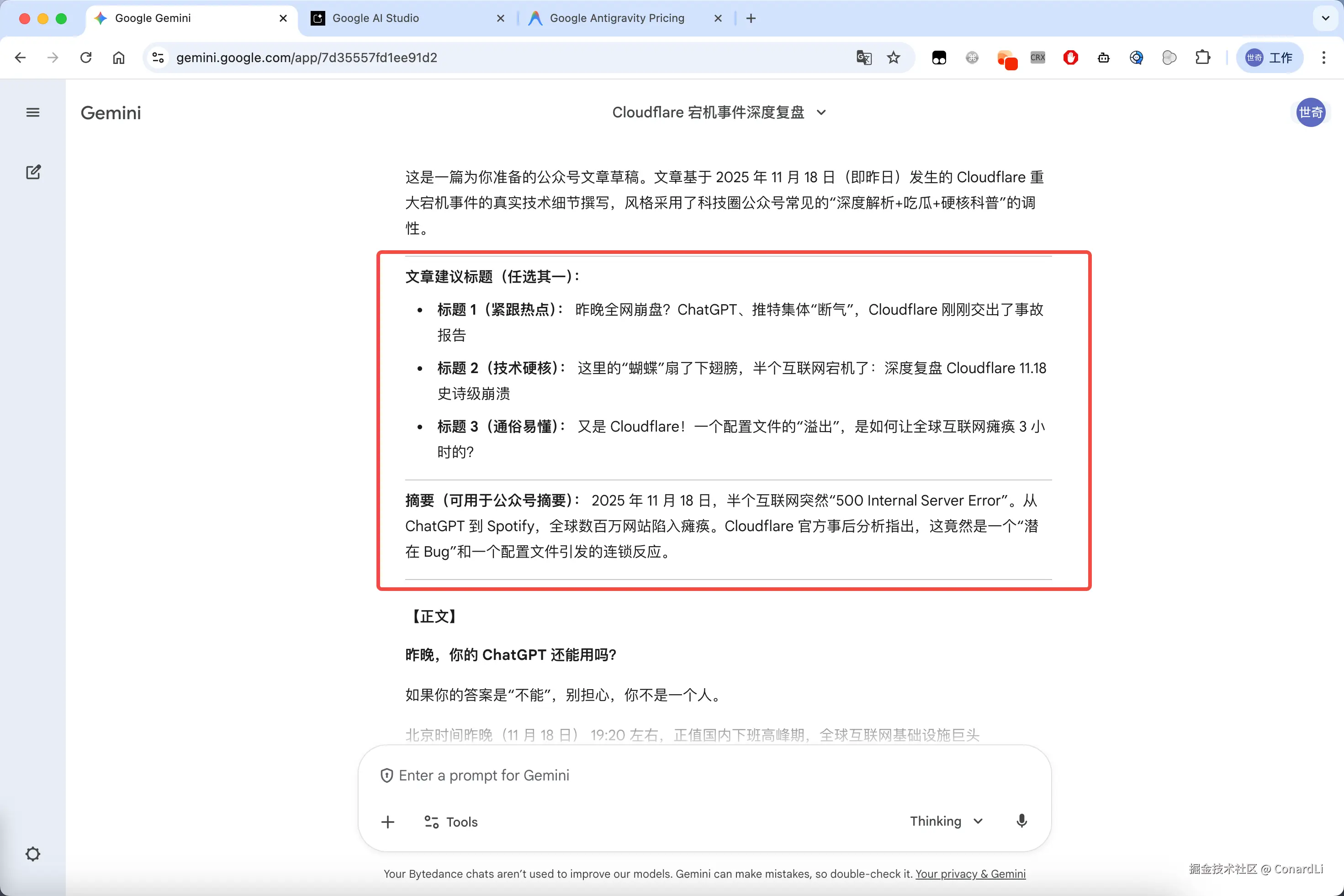 这是 Gemini 3.0 的情况,它先进行了非常全面的分析,然后为最终的结论创作了一个单独的文件,使用英文编写:
