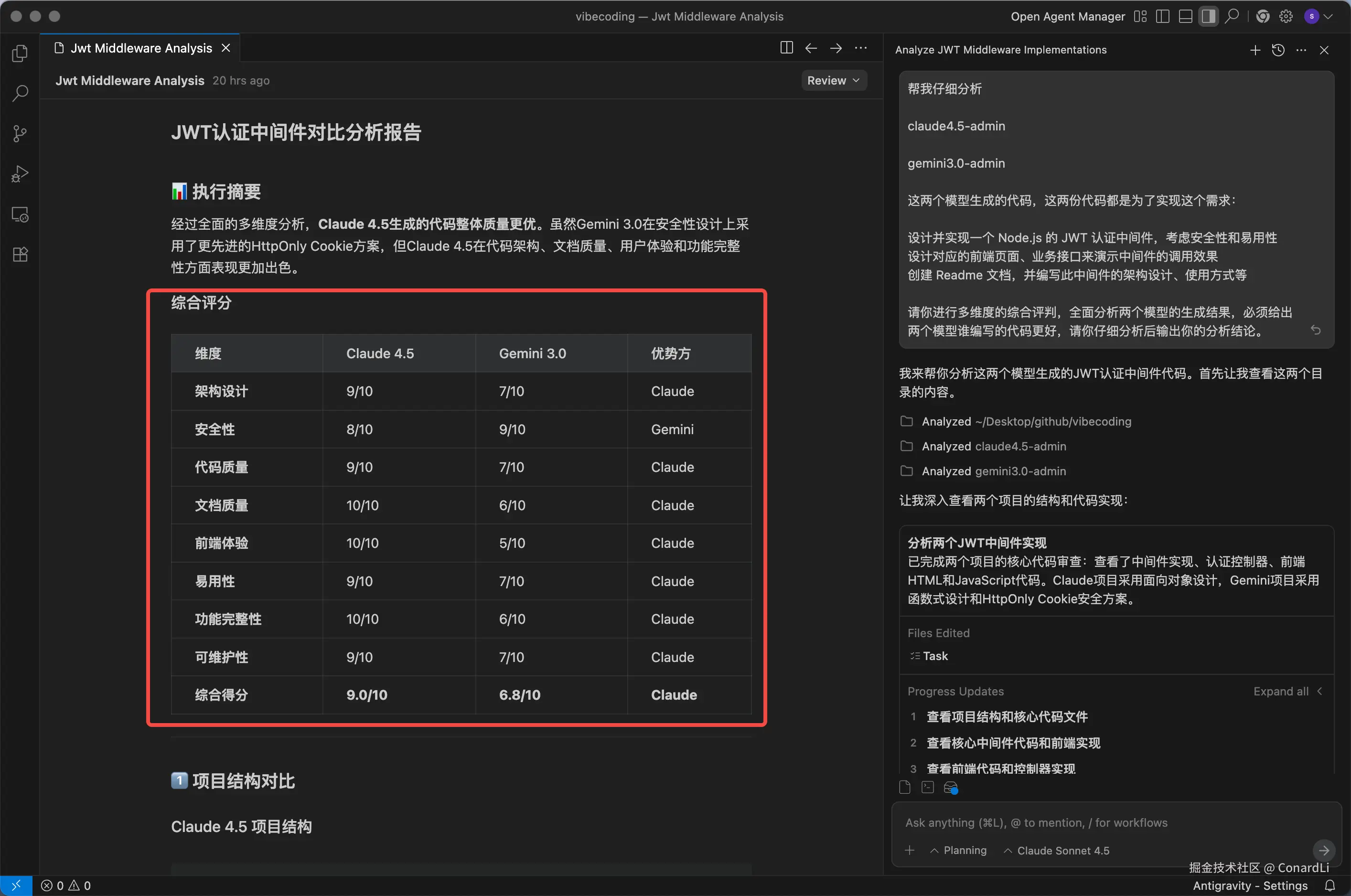 在后面的实战对比中,我们发现,在复杂项目上下文理解,全栈项目的架构设计和编写等实际开发工作中需要考虑的环节上,相比 ClaudeGemini 3.0 还是略逊一筹的,他依然无法撼动 ClaudeVibe Coding 领域的的霸主地位。