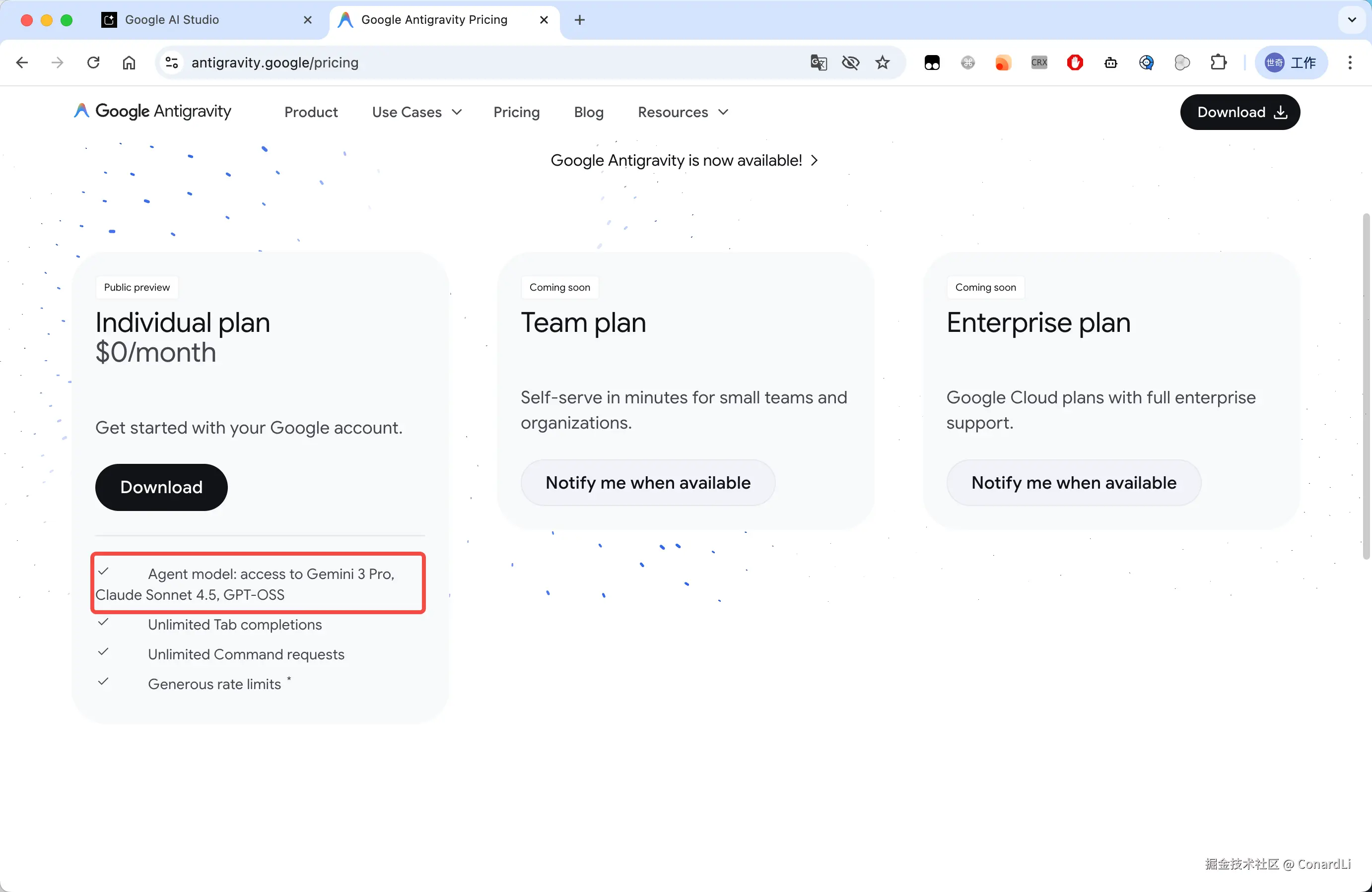 我们直接用 Google 这次和 Gemini 3.0 一起发布的 Antigravity 编辑器,这是一款直接对标 Cursro、Windsurf 的本地 AI 编辑器,可以直接白嫖 Gemini 3 ProClaude Sonnet 4.5