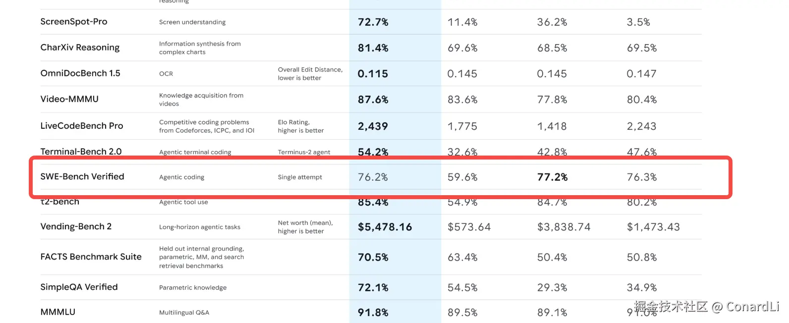 这个其实我们看榜单的 SWE Bentch 就看出来了,这是唯一一个被 Claude超越的指标,这个 Bentch 中包含了大量真实项目开发中要解决的 Issue ,能够衡量模型在真实编程环境中解决问题的能力。