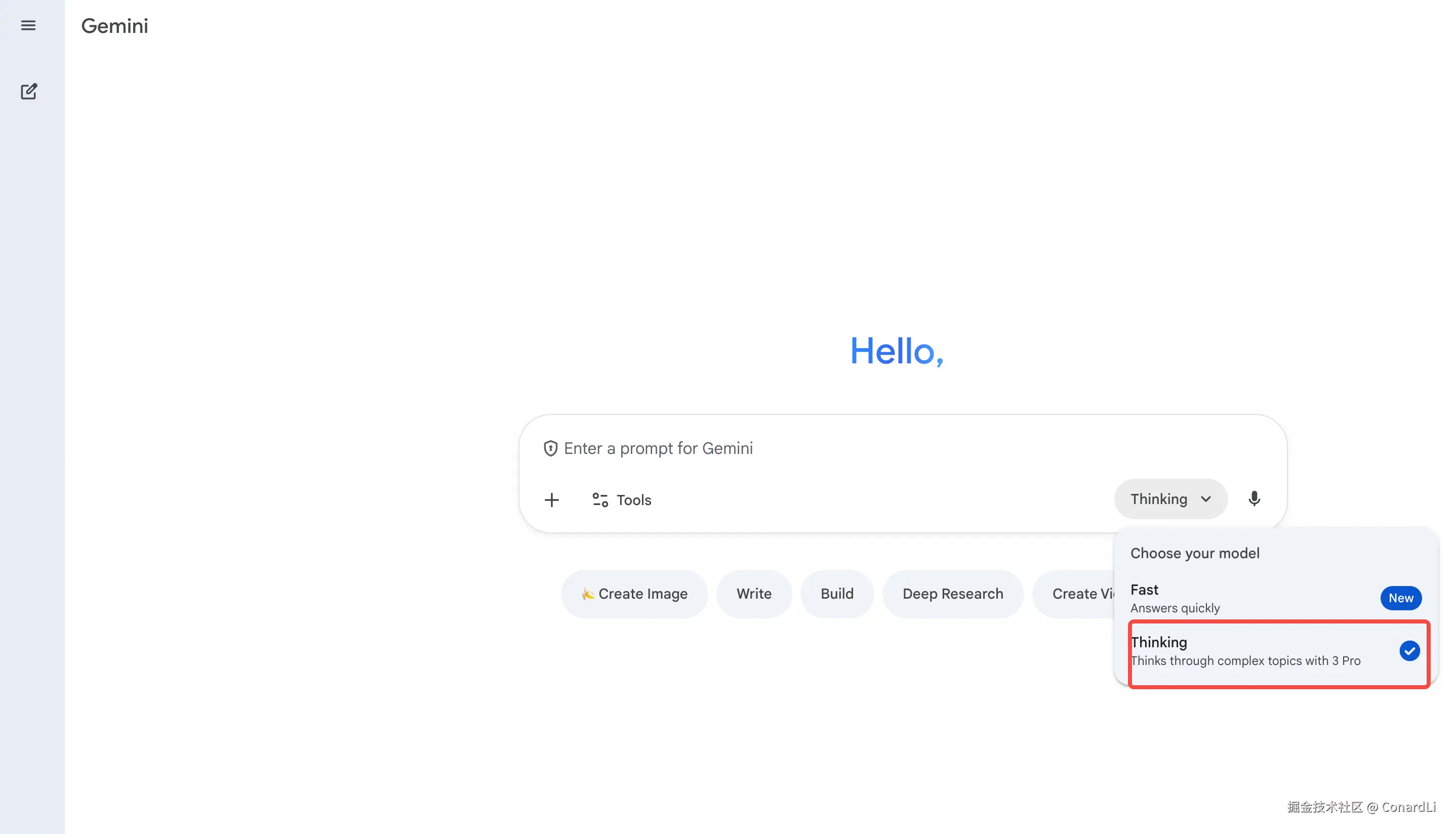 下面,我们开始测试开发能力,这时我们可以到 Google AI Studio 的 Build 功能,这其实是一个在线的 AI Coding 工具,帮你快速把想法变成可运行的网页。