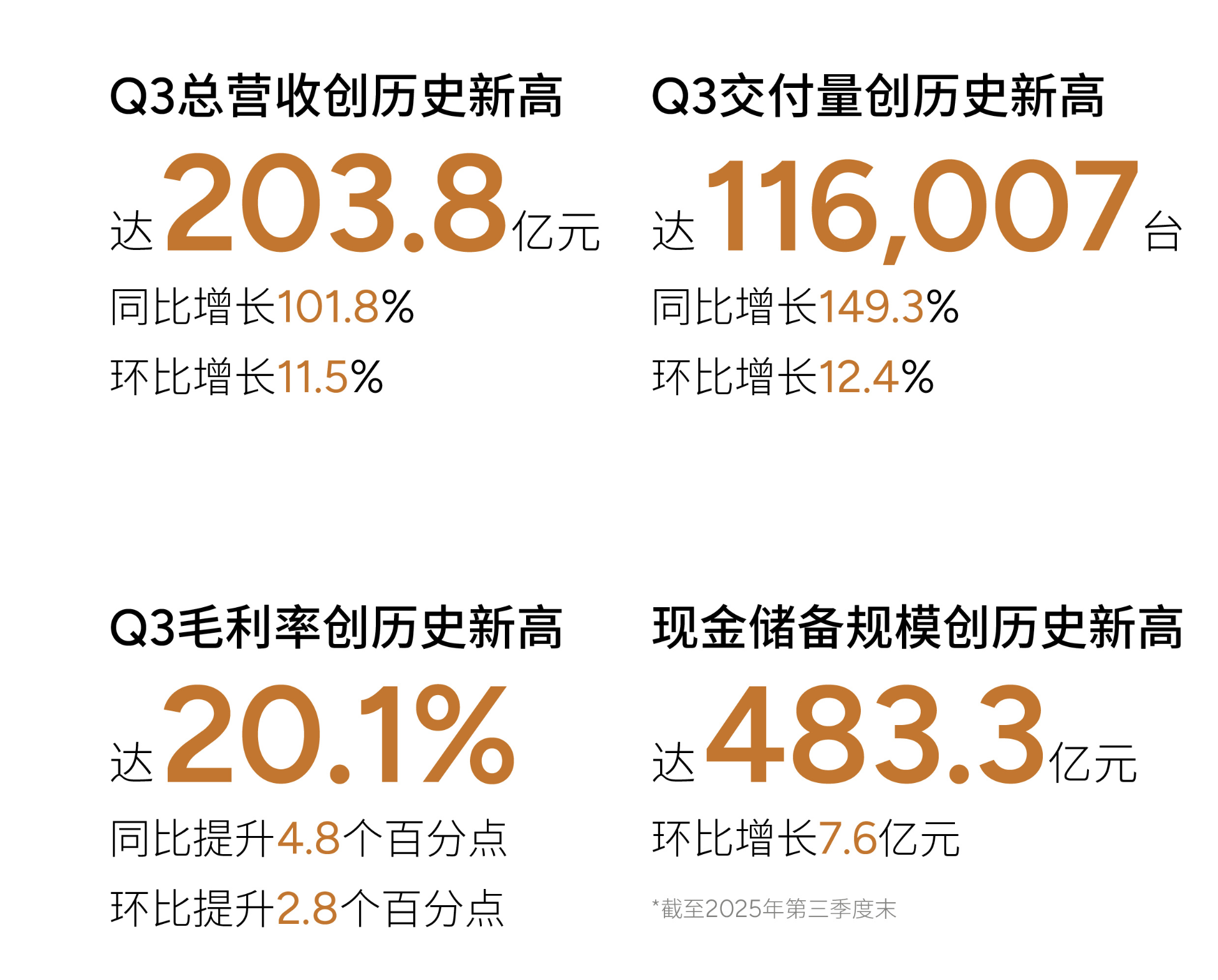 发布会前几天,小鹏公布了其第三季度的财报。今年第三季度,小鹏汽车实现总营收 203.8 亿元,同比增长 101.8%,环比上一季度增长 11.5%,当季净亏损 3.8 亿元。