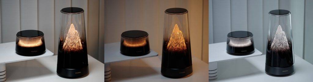独特的雪山造型,搭配冷暖氛围灯光,能根据时间和天气自动变换光效——晴天是耀眼的阳光,夜晚是温馨的暖光,阴天雪天则是清冷的白光。