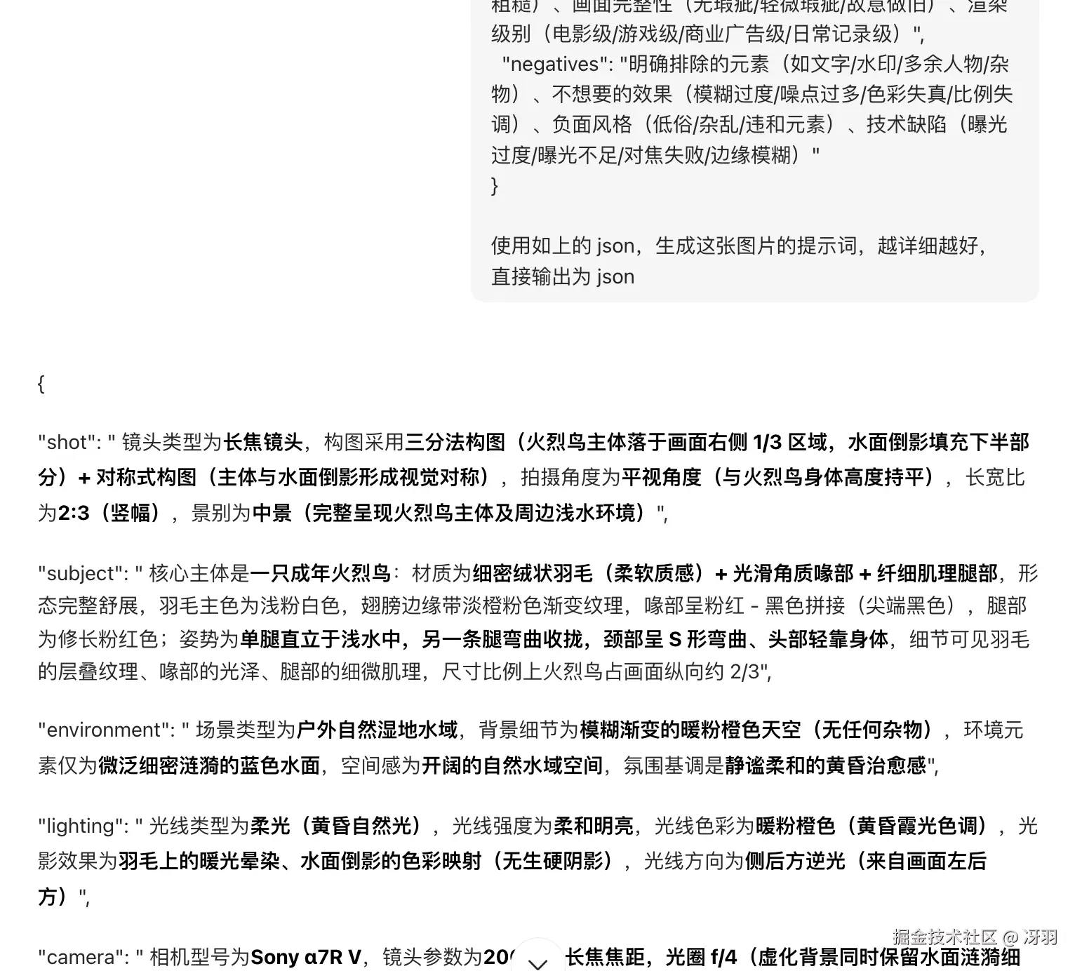 使用如上的 json,生成这张图片的提示词,越详细越好,直接输出为 json