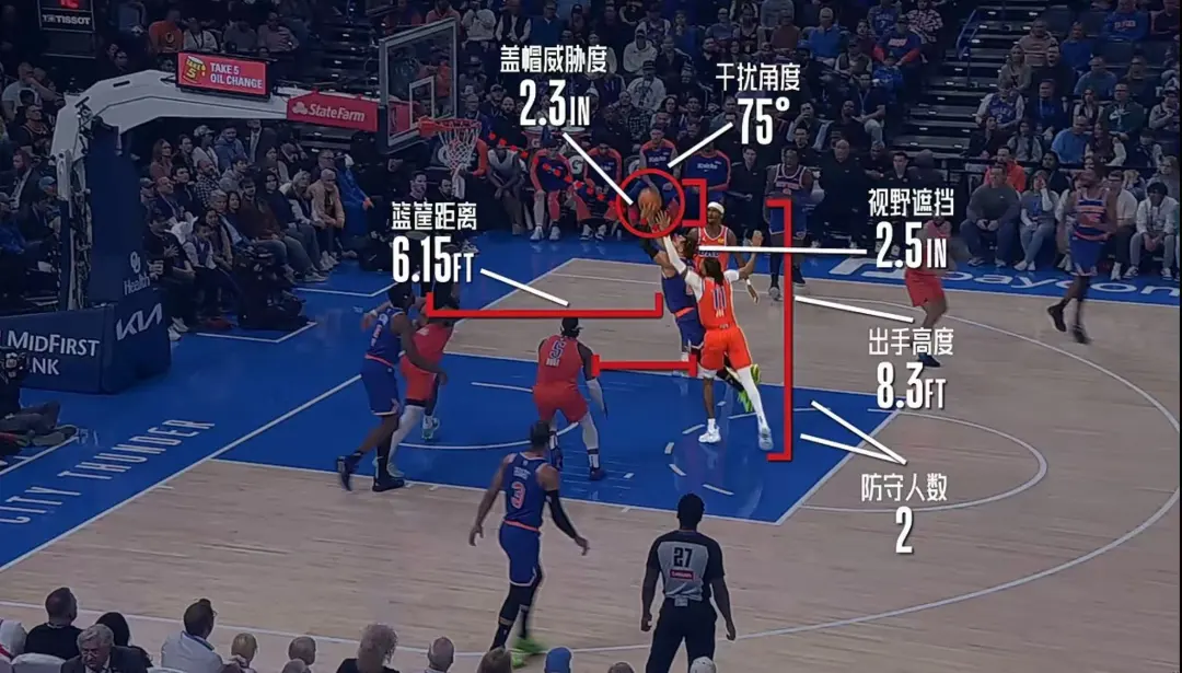 第一,防守数据统计(Defensive Box Score)。防守一直是篮球场上的「玄学」。过去我们评价追梦格林防守好,全凭印象流。现在,AI 算法能实时识别每一秒钟「场上谁在防谁」,并计算防守施压频率、协防质量等。这意味着,防守端的贡献第一次有了客观的数据标尺。