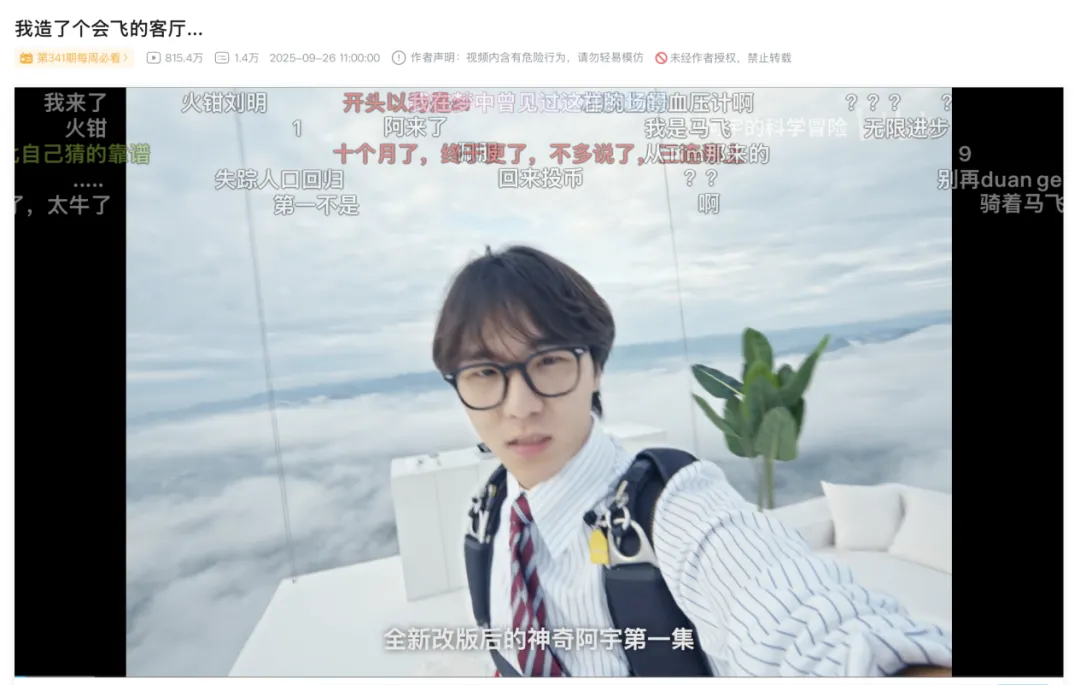 阿宇的「空中客厅」在 B 站达到 800 万+ 的播放量|图源:bilibili