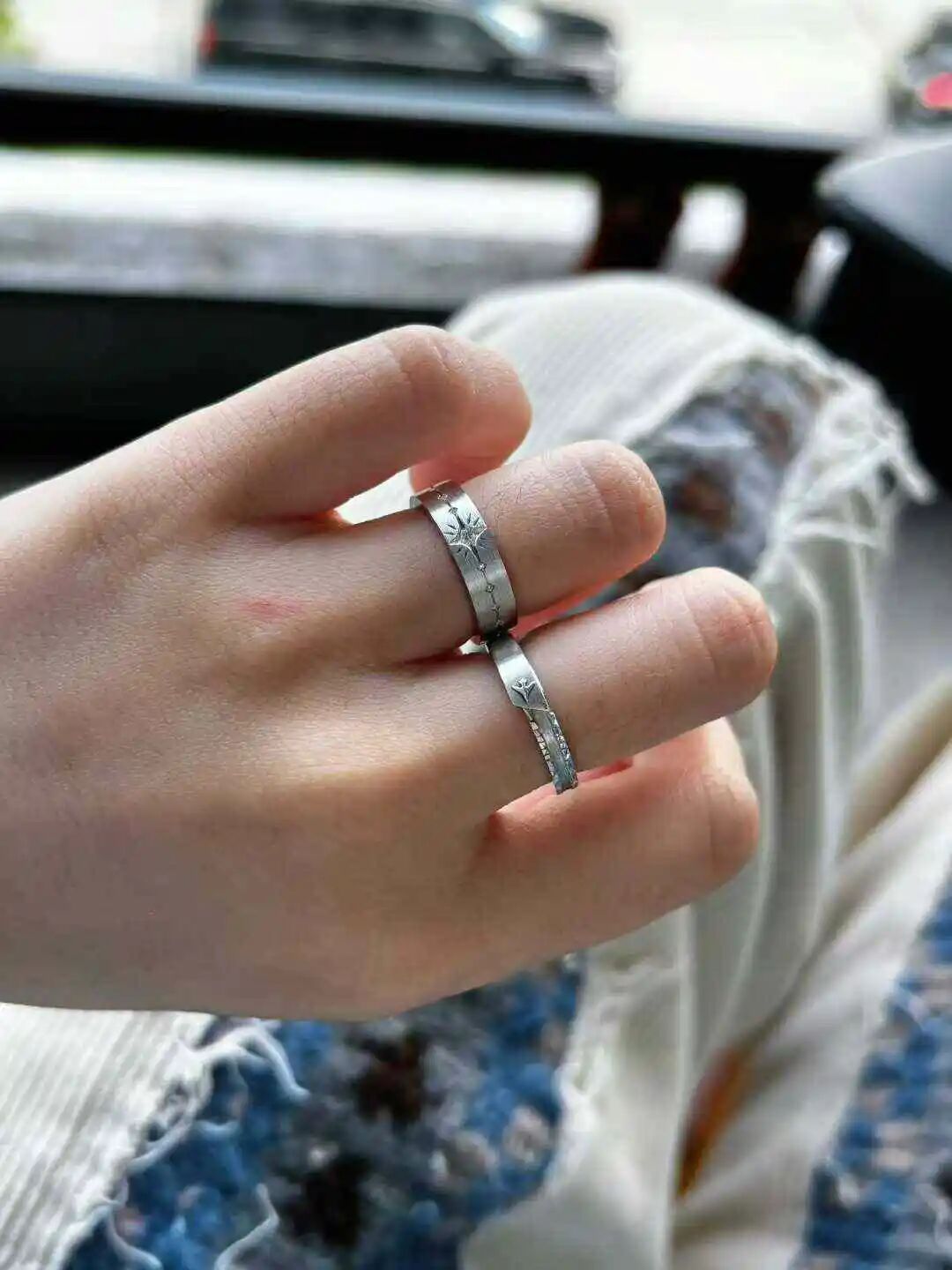 她的两只手上各戴着一只戒指,一只来自沈星回,一只来自夏以昼。这两个男人都是乙女游戏《恋与深空》中的男角色。