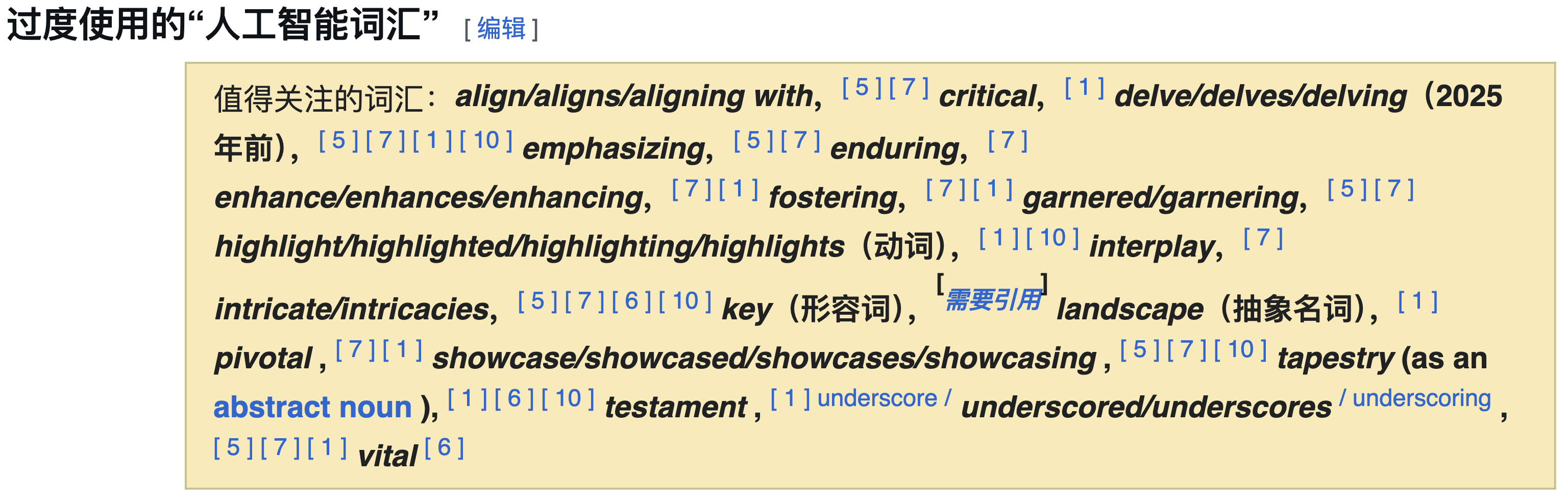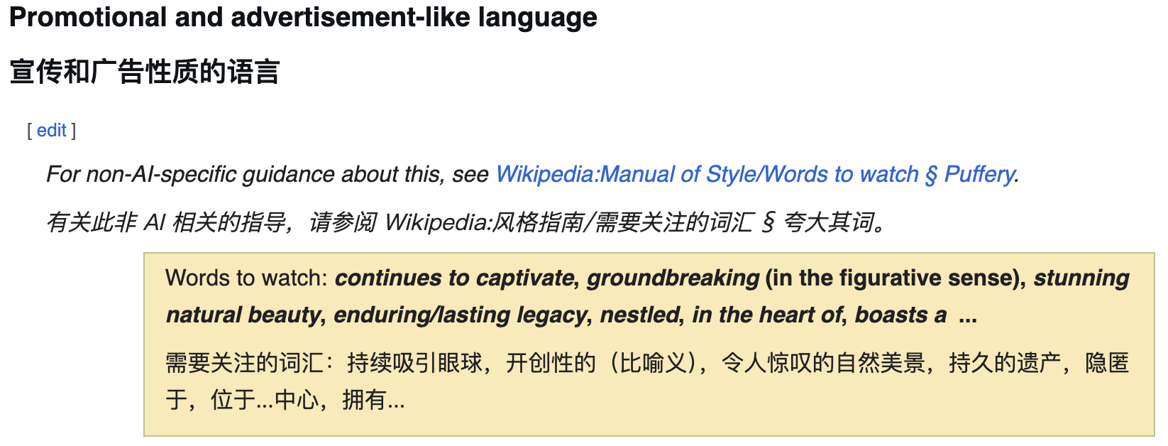 ▲图片来源:https://en.wikipedia.org/wiki/Wikipedia:Signs_of_AI_writing