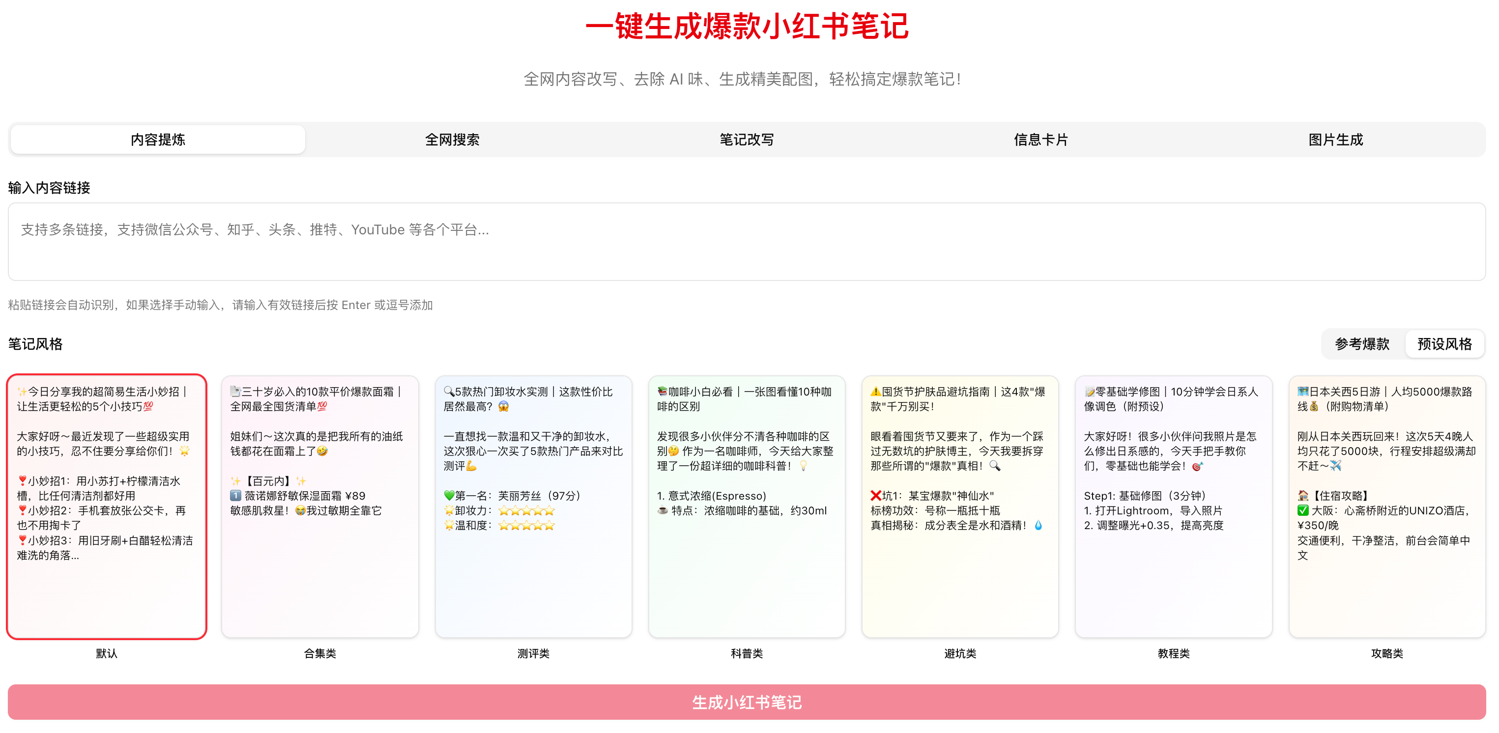 ▲ 大量能直接生成,爆款小红书笔记的 AI 工具