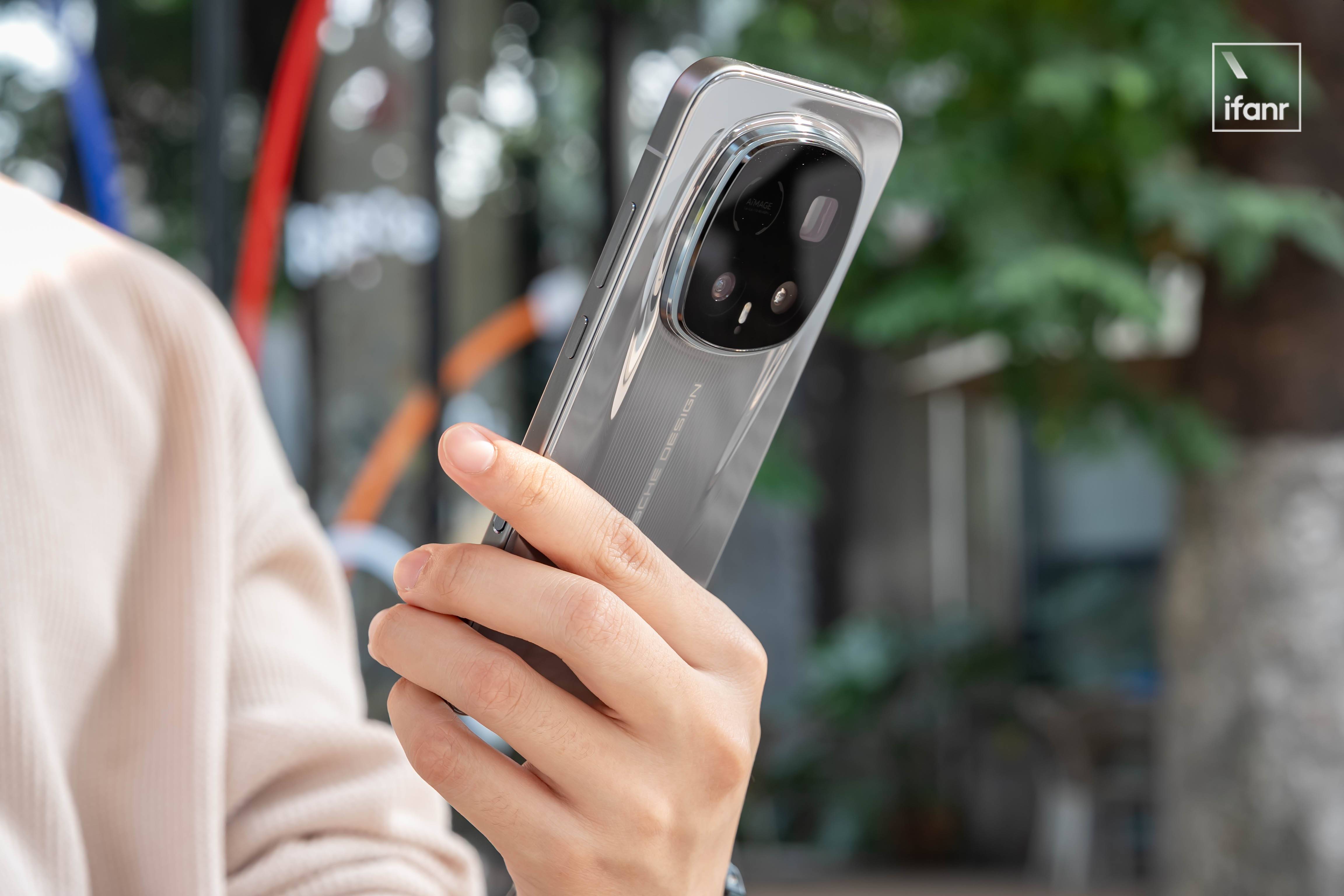 它一方面强化了背部的光影层次和视觉张力,宛如 911 车型硕大的后轮宽体曲线,让它天然自带凌厉的速度感;另一方面也让机身在握持时更贴合掌心,带来更符合人机工学的舒适手感。