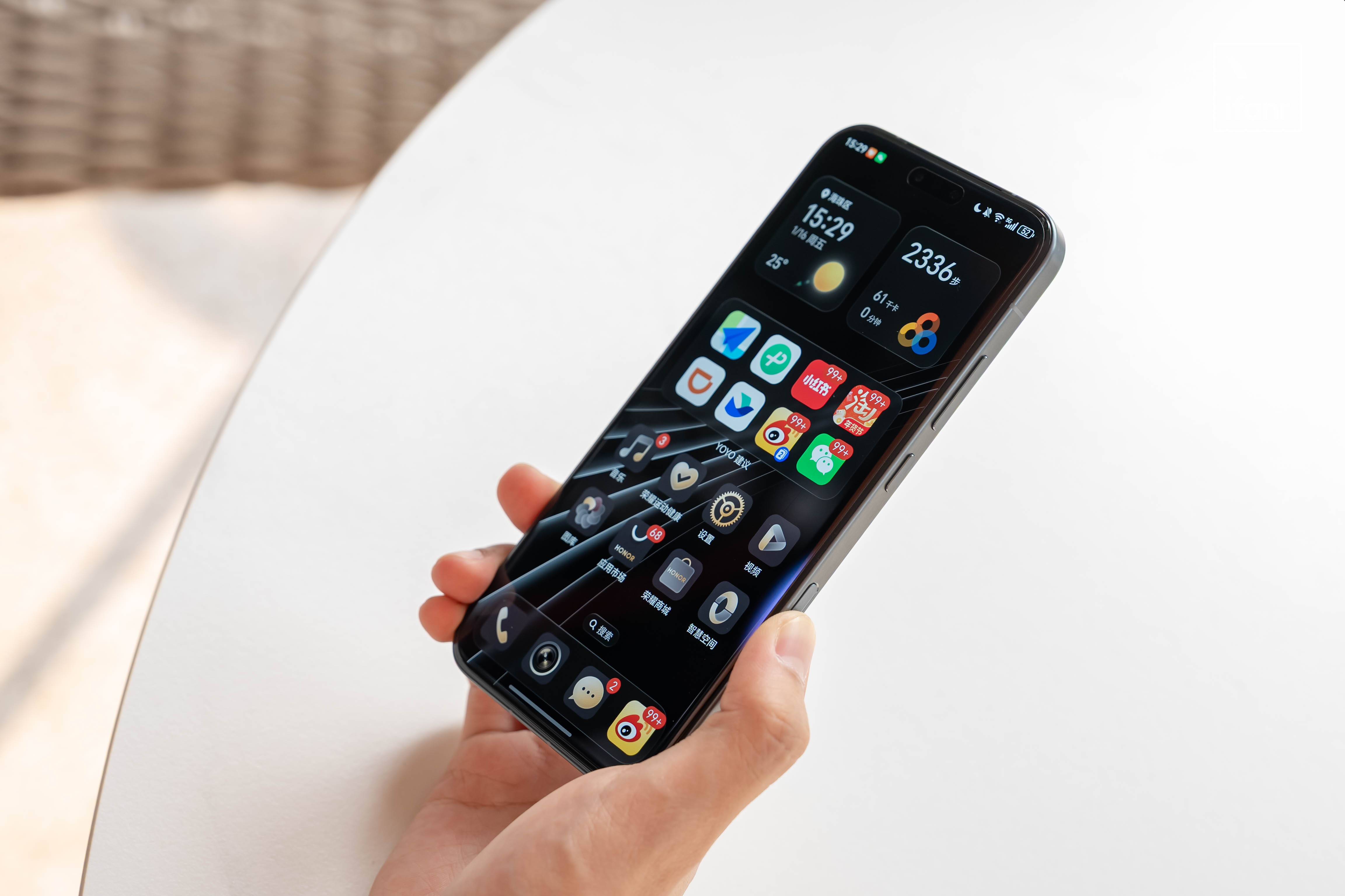在实际握持时,屏幕看起来依然足够大,但手指在左右滑动时却不需要刻意调整握姿,拇指覆盖范围也更自然。这种「看着是大屏、拿着却不显宽」的反差,正是荣耀Magic8 RSR 在手感上最讨喜的地方。