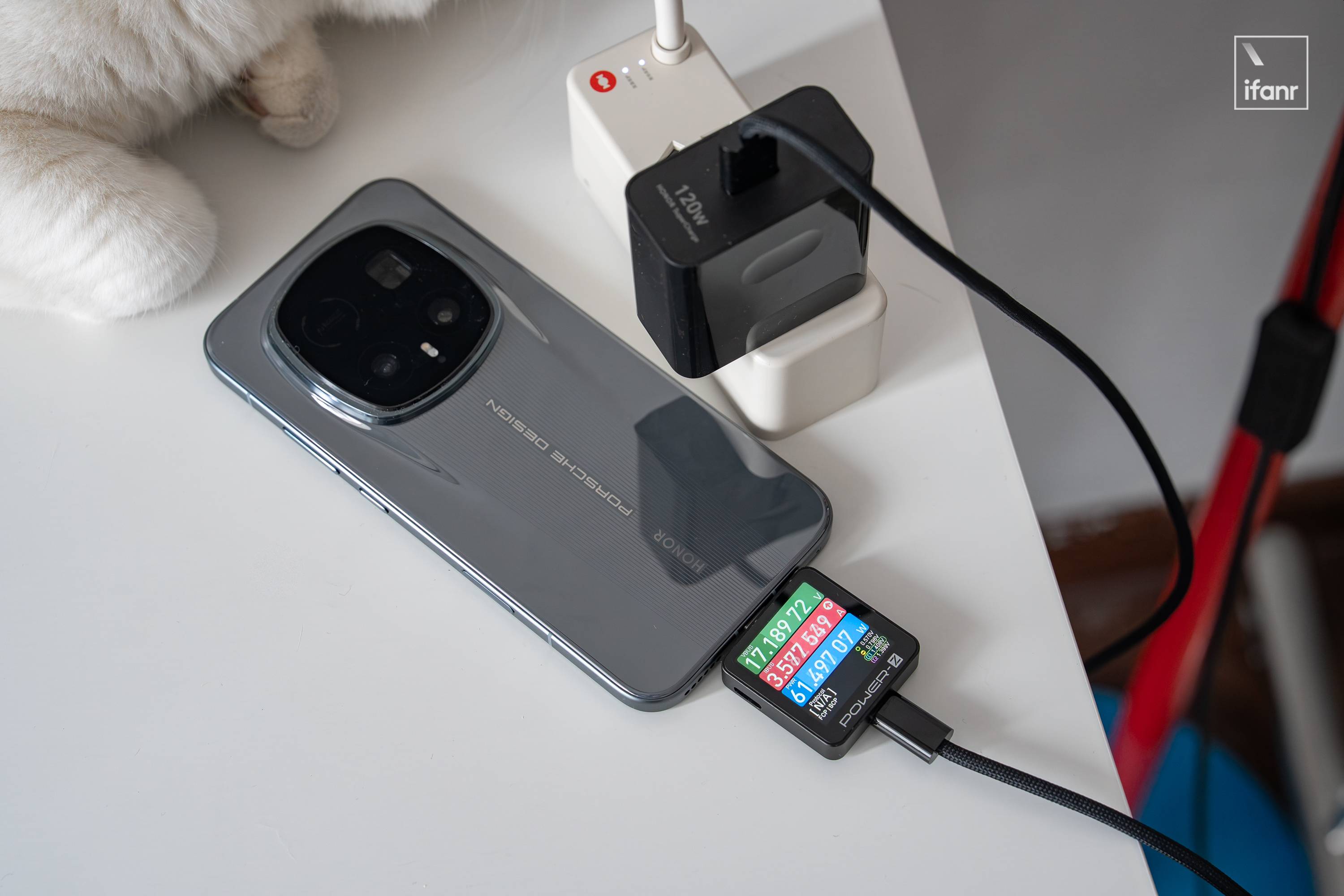 电池续航方面则是搭载了 7200mAh 的新一代青海湖电池,配合120W有线快充与80W无线快充。搭配官方标配的 120W 充电器,实测峰值功率 61W,15 分钟可冲进电量 42%,48 分钟充满。