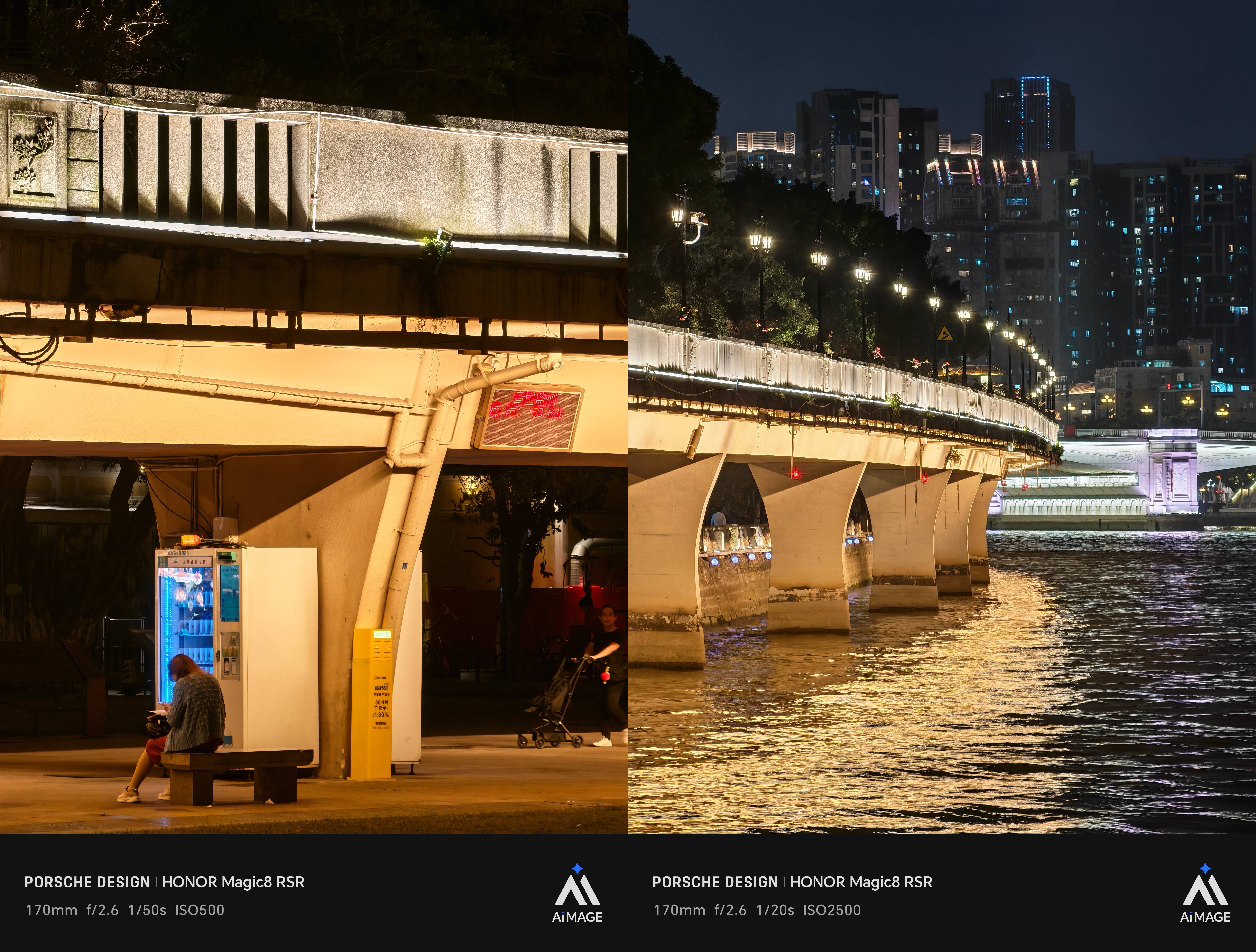 在 85mm 与 170mm 这两个焦段下,荣耀Magic8 RSR 的夜拍表现相当稳定。画面在还原肉眼所见光影层次的同时,并未刻意拉高亮度,避免了整体「傻亮」的情况;暗部细节保留得较为充分,画面纯净度也维持在一个不错的水平。