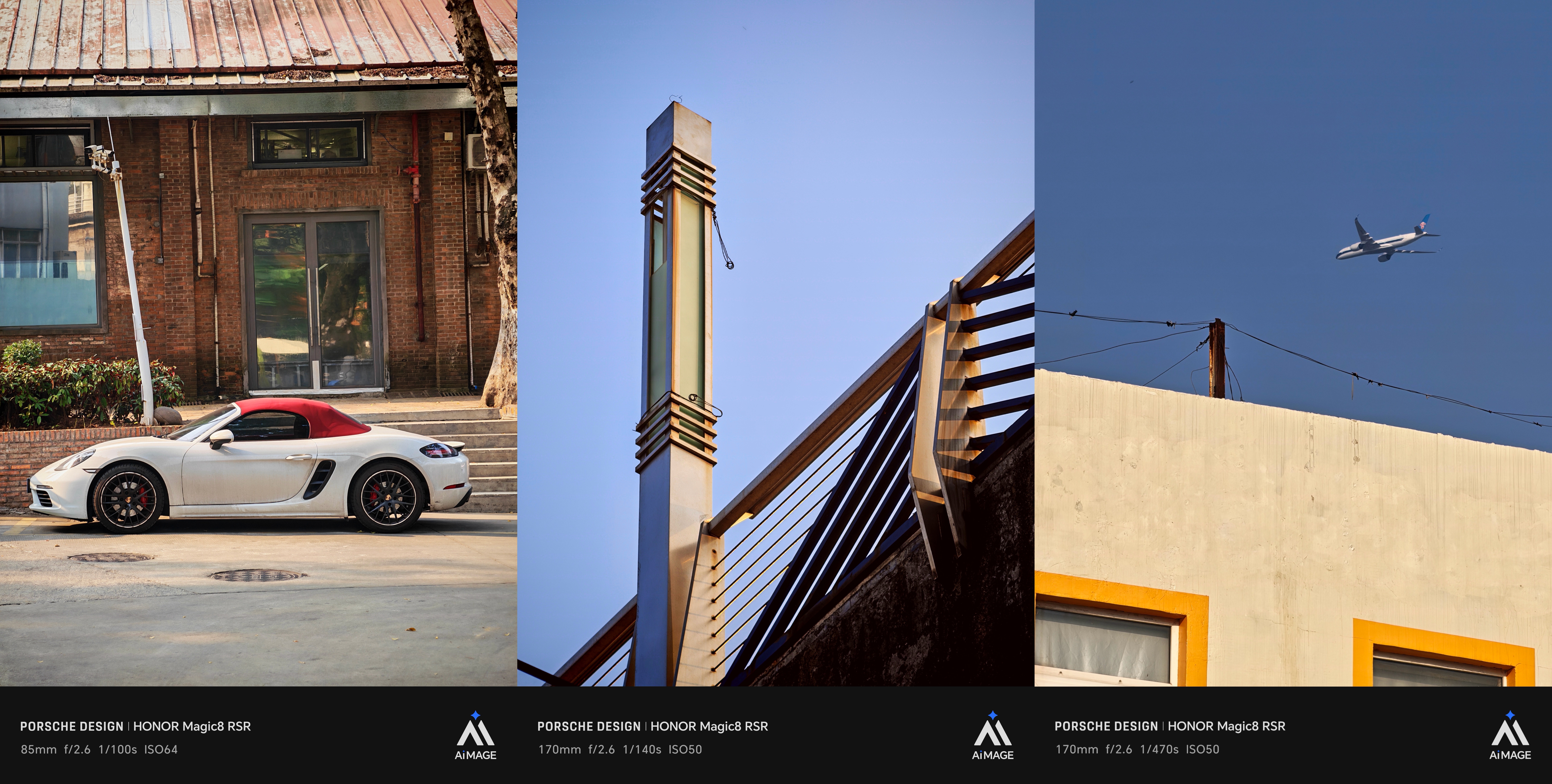 三颗摄像头与 AiMAGE 标识被有序地分布在矩阵四角,而保时捷 911 标志性的日行灯光学轮廓与线条,也被精密复刻于镜头镜片之上,重新演绎了这一经典符号。