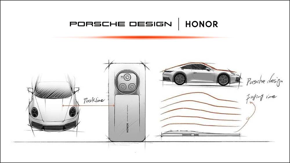 甚至在荣耀与保时捷设计达成合作时的最初草图上,我们都能看到「流光飞线」的存在。