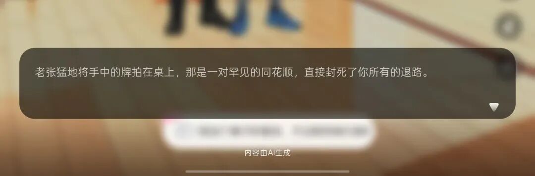 笔者在体验的过程中,尝试了自定义输入将麻将换成了掼蛋,AI在经过编剧、导演、演员代入后,便生成了新的剧情走向。